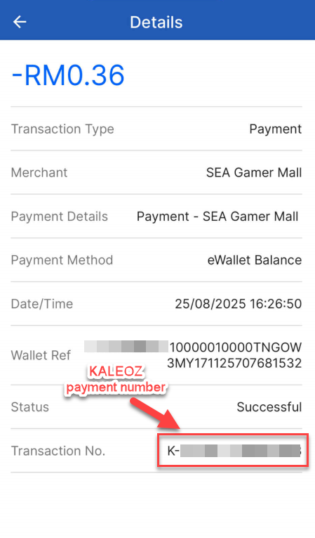Touch 'n Go eWallet on KALEOZ is only available for Malaysians using MYR currency. It cannot be used for topping up your KALEOZ balance.
