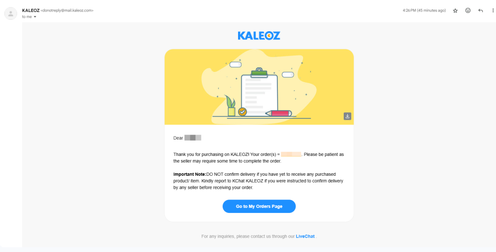 If you have any issues, please do not hesitate to contact our Kaleoz Support via Kchat for further assistance.