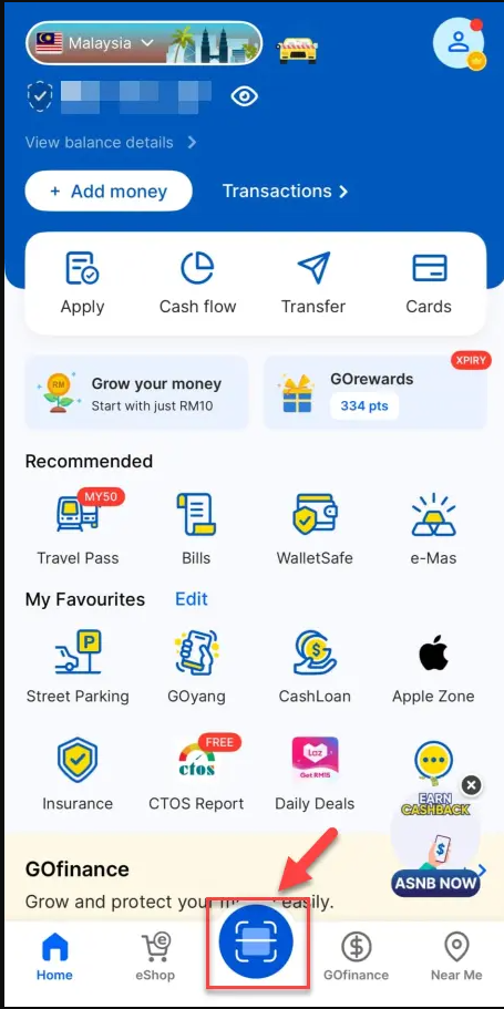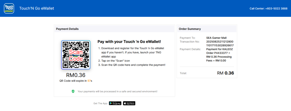 Step 3: The QR code will be displayed as example below. Launch your TNG eWallet app and tap 'Scan' icon to scan the QR code.