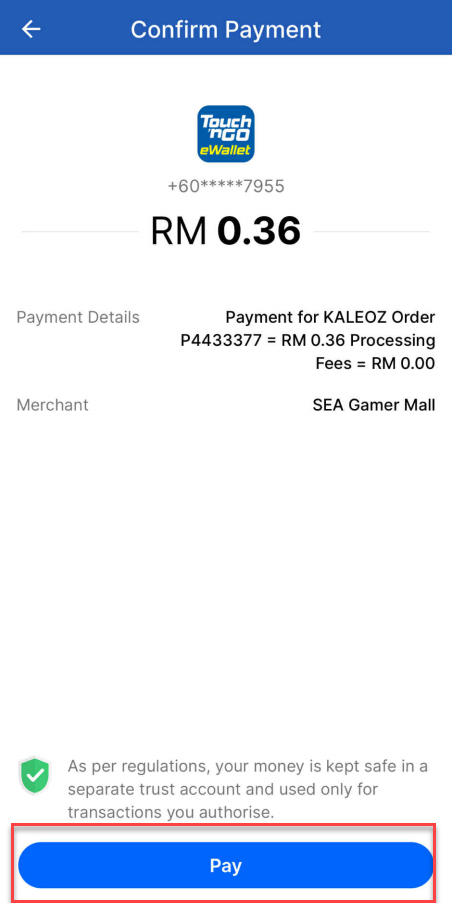 Step 4: Tap on "Pay" and then key in your 6-digits TnG transaction PIN to complete the payment.