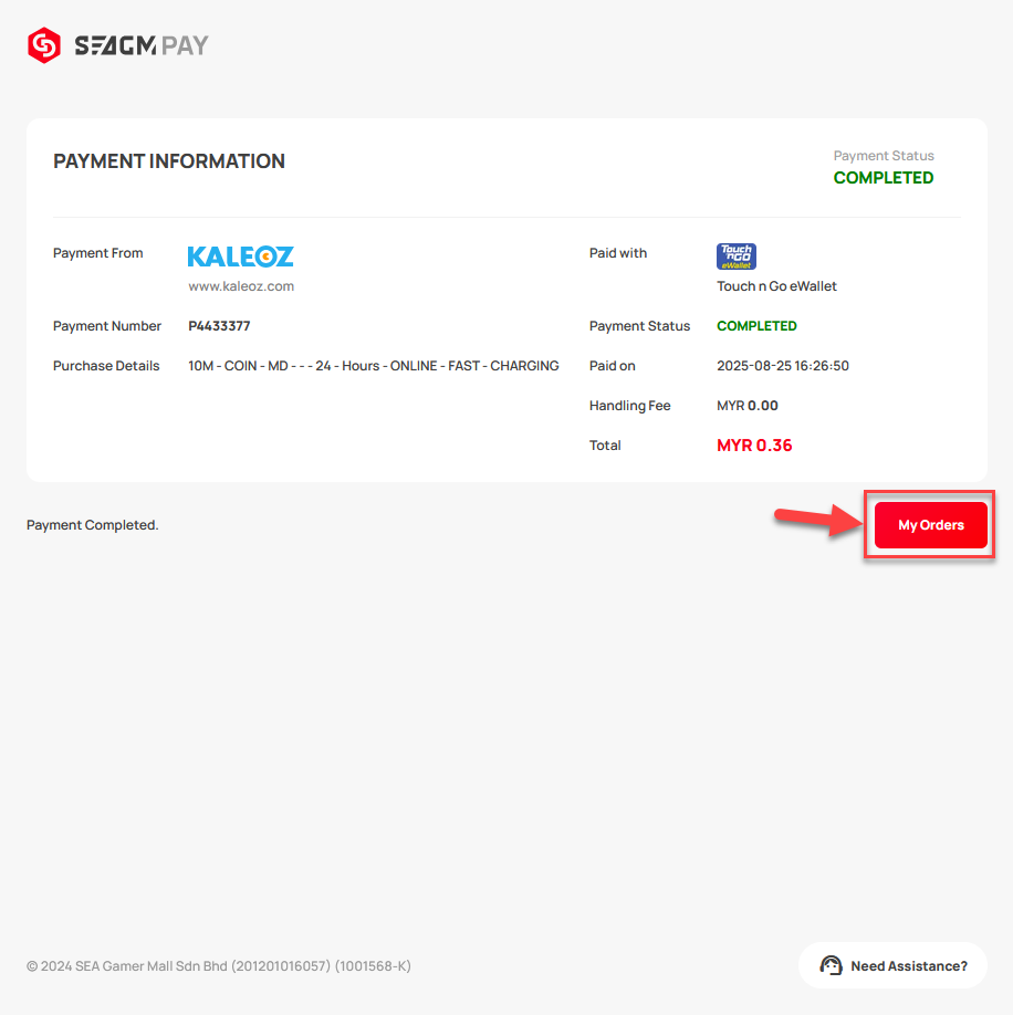 Step 5: Once the payment is complete, you will be redirected back to the Payment Information page. You can check your order status by clicking on "My Orders" as shown in the picture below.