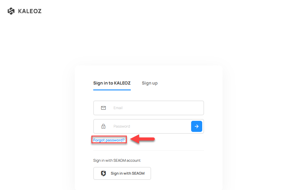 Step 2: In the 'Sign in to KALEOZ' section, click 'Forgot password?' to be redirected to the password reset page.